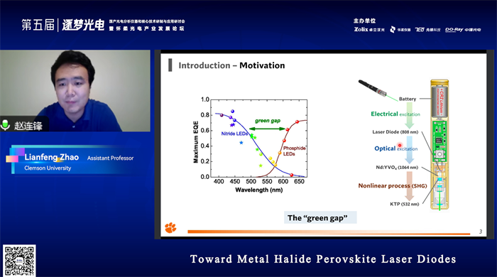 遠(yuǎn)在美國(guó)克萊姆森大學(xué)趙連鋒助理教授通過(guò)國(guó)際直播平臺(tái),為國(guó)內(nèi)外科研工作者做Metal Halide Perovskite Laser Diodes英文報(bào)告,趙老師聚焦于金屬鹵化物鈣鈦礦半導(dǎo)體這一多功能的雜化材料,該材料在推動(dòng)下一代光伏與發(fā)光技術(shù)革新中展現(xiàn)出巨大潛力。報(bào)告重點(diǎn)闡述了團(tuán)隊(duì)在電泵浦鈣鈦礦激光二極管領(lǐng)域的*新突破,包括鈣鈦礦內(nèi)光增益機(jī)制的深入研究,以及在極端電流條件下器件性能的優(yōu)化策略。這些成果不僅增進(jìn)了對(duì)該領(lǐng)域關(guān)鍵技術(shù)的理解,還為克服技術(shù)障礙、推動(dòng)該技術(shù)變革性發(fā)展提供了寶貴見(jiàn)解。