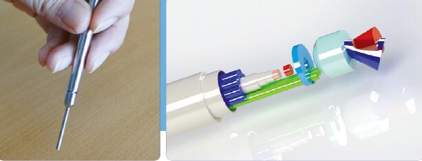 系統(tǒng)采用醫(yī)用專用拉曼探頭,廣泛適用于各種高靈敏需求,如消化道檢測(cè)、開顱手術(shù)腦腫瘤檢測(cè),采用醫(yī)用尼龍光纖包層和不銹鋼探頭封裝, 除常規(guī)的2.1mm內(nèi)窺鏡探頭外,可定制1.65,0.9mm 超細(xì)探頭,用于動(dòng)脈血栓的檢測(cè)。