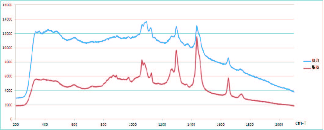 肌肉與脂肪的拉曼光譜差異