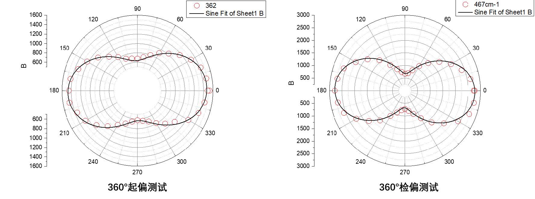 黑磷拉曼特征峰位的偏振響應(yīng)譜圖。(a)362cm-1的起偏測試響應(yīng);(b)467cm-1的檢偏測試響應(yīng)。