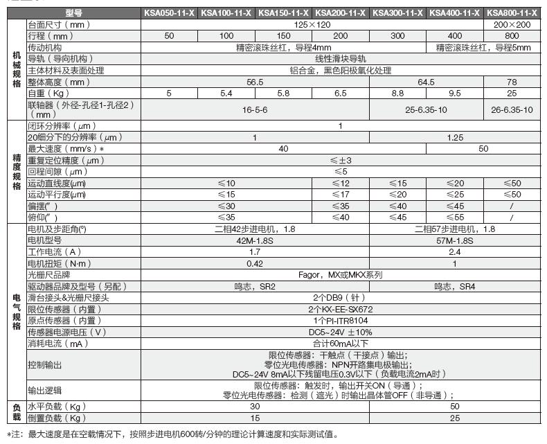 KSA系列高精密電動直線滑臺選型表: