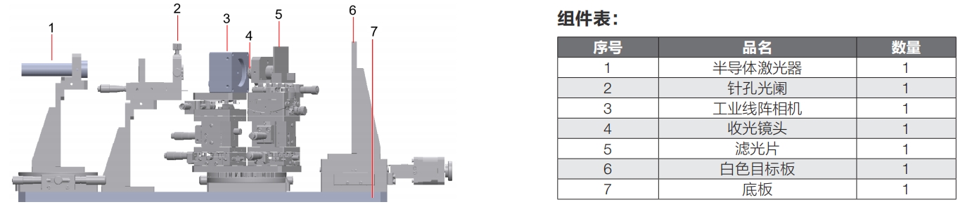 LDTS激光位移實(shí)驗(yàn)系統(tǒng)組件表: