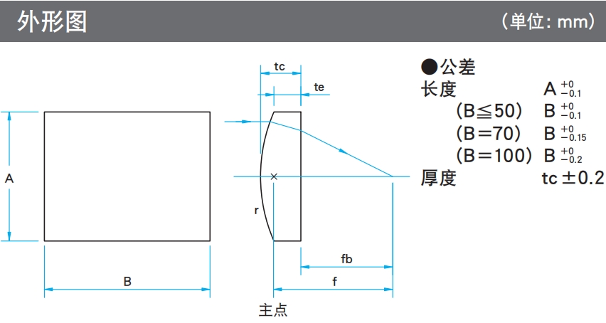 ?柱面平凸透鏡有色差,焦距隨波長變化。各波長的焦距請參考網(wǎng)頁上的“焦距隨波長變化特性數(shù)據(jù)”確認(rèn)。