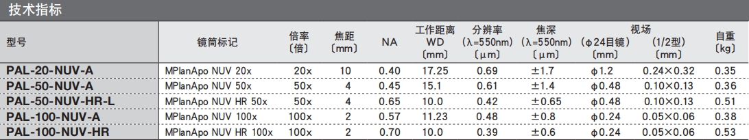YAG激光的3次諧波(355nm)加工用的高NA無限共軛物鏡。