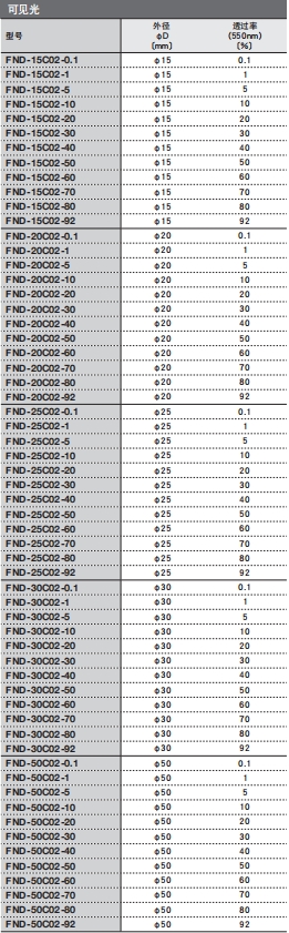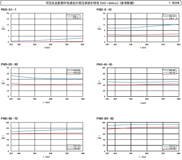 ?透過率92%的濾光片(FND-92,其它),是兩面無鍍膜的平面基板。無鍍膜面存在反射率4%(兩面共8%)的損失,所以透過率為92%左右。