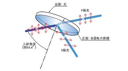 ?平板型偏光分光鏡的反面沒(méi)有鍍防反射膜。(以布魯斯特角入射P偏光反射率為0%)