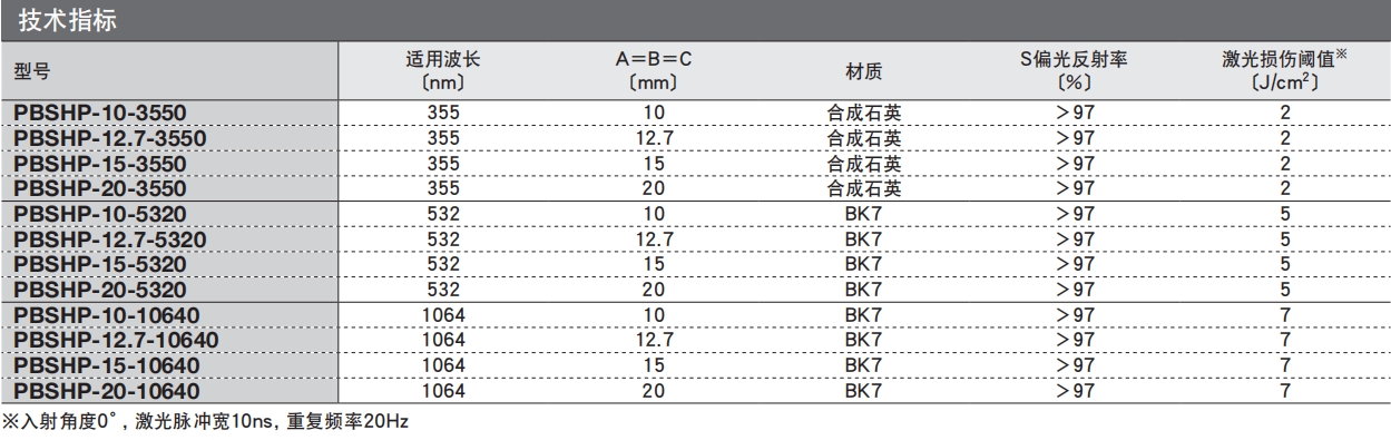 為YAG激光等的脈沖激光設(shè)計的偏光分光鏡。 由于棱鏡貼合面不使用黏合劑,而是通過光學(xué)接觸來連接,所以能承受強(qiáng)激光。
