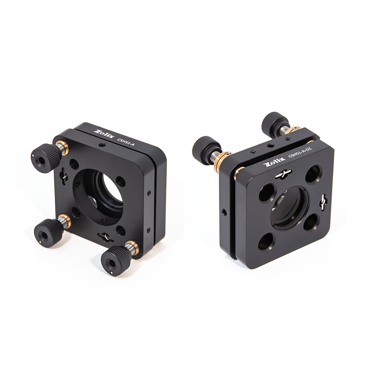 ZOLIX提供的籠式反射鏡架可兼容30mm籠式系統(tǒng)也可在自由空間中使用,并可提供左右手安裝,適用于Ø25.4mm的光學(xué)元件。中心安裝孔為SM1螺紋孔,孔內(nèi)附帶2個SM1卡環(huán)?;\桿連接通孔處各配有一個位于側(cè)面的鎖緊固定螺絲,可使用1.5mm六角扳手緊固,其CSHS1-A-DZ反射鏡架調(diào)節(jié)器提供鎖緊功能。