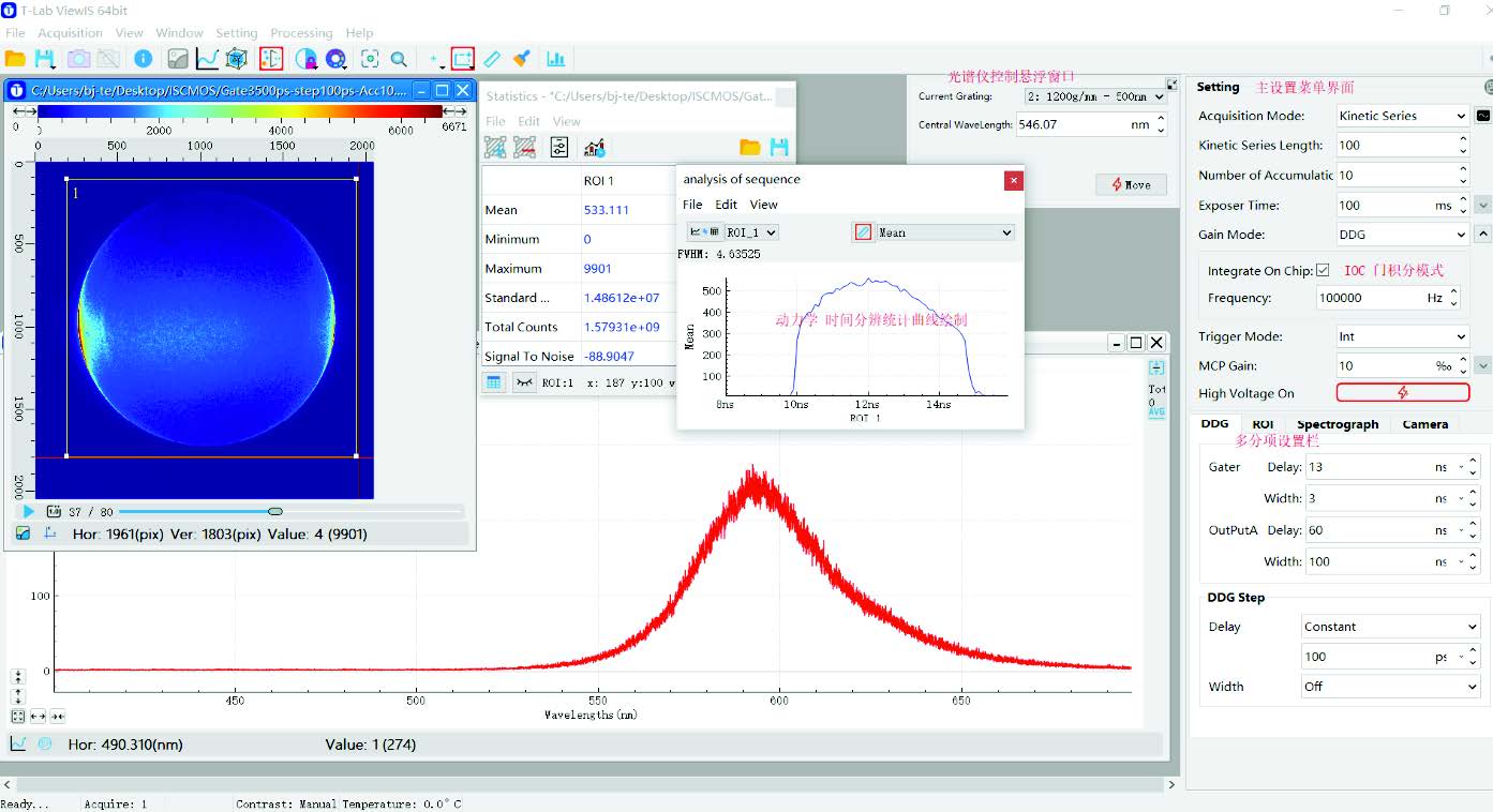 延遲和門控自動(dòng)Step 步進(jìn)功能,一鍵完成時(shí)間分辨光譜采集 |