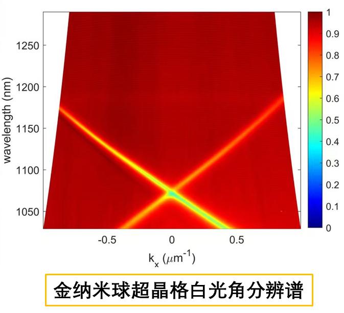 金納米球超晶格近紅外波段的白光角分辨光譜,反映該結構的光學共振模式隨著白光入射角度的變化規(guī)律,根據(jù)測量結果可優(yōu)化結構設計
