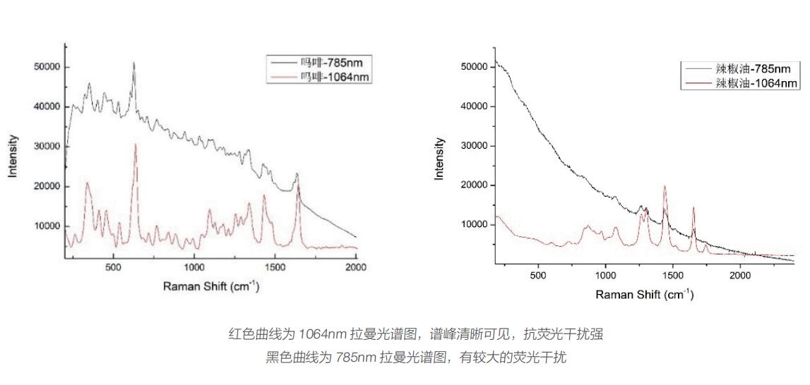 1064nm 手持式拉曼光譜儀可以有效避免熒光干擾現(xiàn)象,現(xiàn)場直接鑒定大多數(shù)高熒光物品,鑒定物品種類更加豐富與準確。