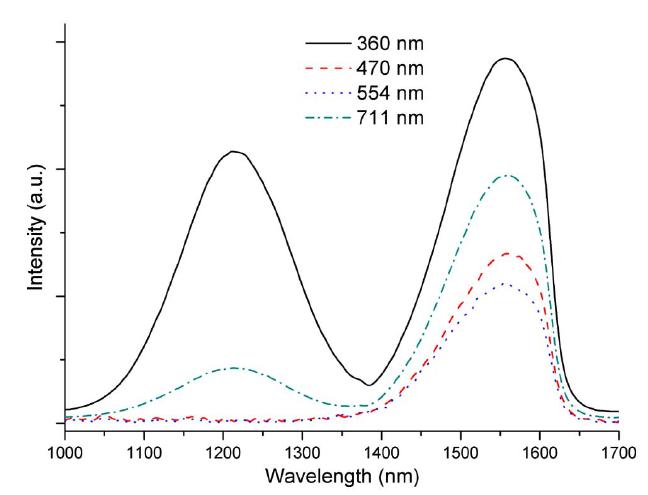 300K不同激發(fā)波長下Bi:CsI 晶體的近紅外發(fā)光光譜