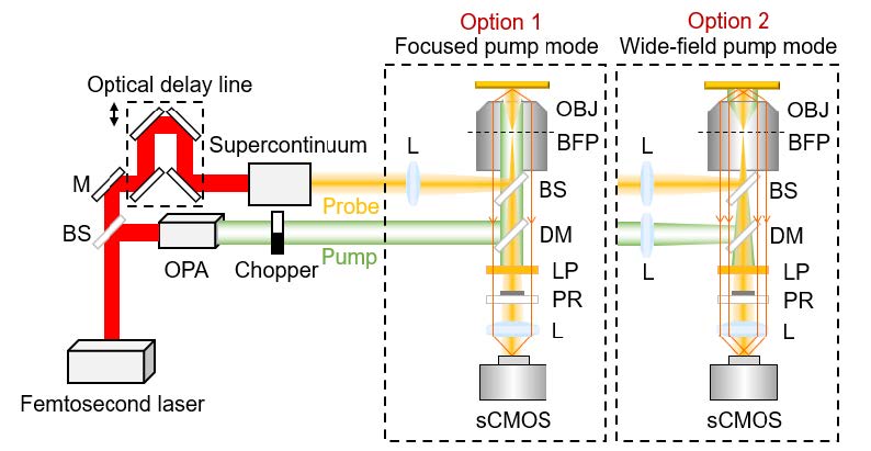 顯微瞬態(tài)吸收、點泵浦- 寬場探測、寬場激發(fā)寬場探測 |