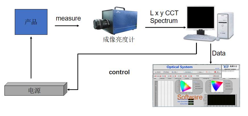亮度、色坐標(biāo)、色溫、照度均勻性、色度均勻性等,自動(dòng)配光、缺陷檢測