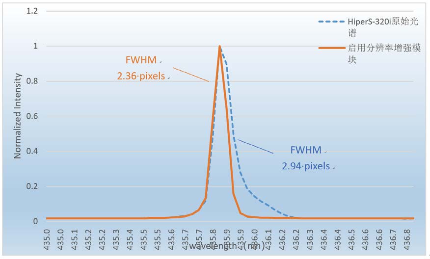 注1:狹縫光譜分辨率,常規(guī)光譜儀在中心波長(zhǎng)435.83nm,狹縫寬度10um;