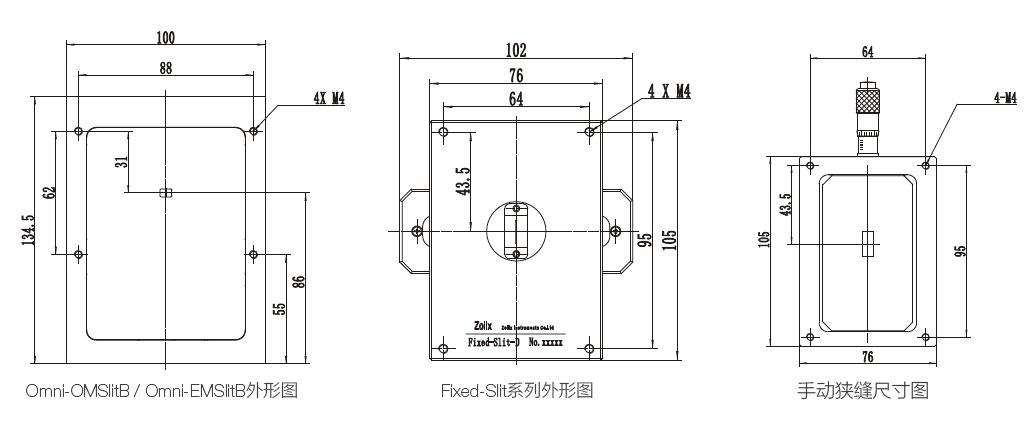 注2、電動狹縫與手動狹縫的安裝孔位有差別,配置外設(shè)時,需要注意安裝孔位是否匹配