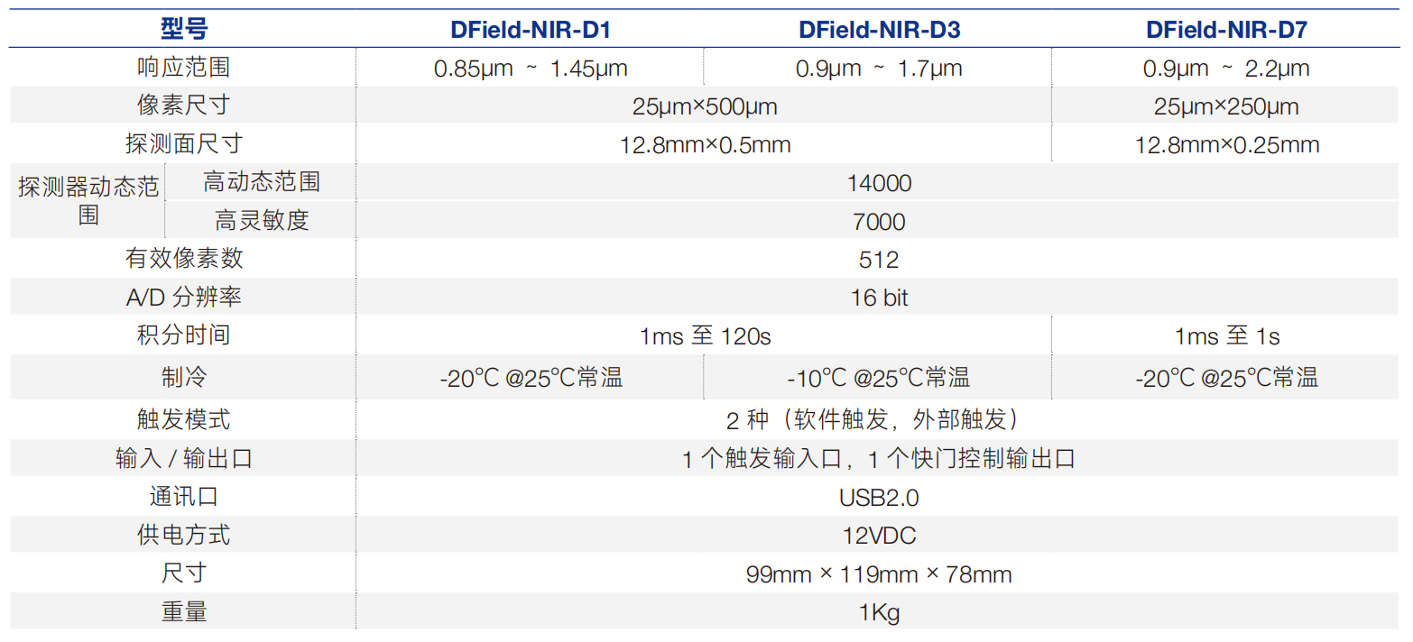 DField-NIR 系列 InGaAs 線(xiàn)陣探測(cè)器具有高動(dòng)態(tài)范圍、低噪聲、 波長(zhǎng)覆蓋范圍廣等特點(diǎn),可應(yīng)用空間廣闊。其波長(zhǎng)覆蓋檢測(cè)范圍 可達(dá) 850nm~2200nm。