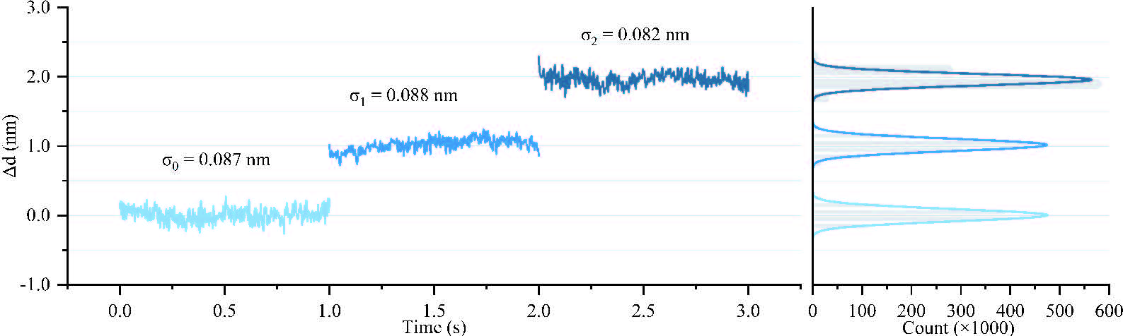 據(jù)點進行平均計算獲得。在 0.01 至 1 MHz 的頻率范圍內(nèi),噪聲功率譜密度(NPSD)被計算為 0.032 nm,充分體現(xiàn)了系統(tǒng)的精度。