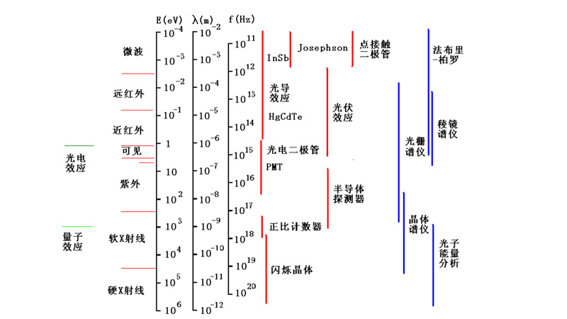 而在大中型裝置上,等離子體輻射逐漸向短波移動,主要探測區(qū)域為紫外、真空紫外和 X 射線。在大中型裝置上,芯部區(qū)域的 C、N和 O等輕雜質(zhì)離子的外層電子被完全剝離。而高Z金屬雜質(zhì)離子由于電離能較高,并未完全電離,仍可以在較短波段(極紫外和X射線波段)觀測到其輻射的線狀譜線。不同區(qū)域的光譜行為和主要探測項目也有所不同。這些波段的范圍、分光方法、探測元件可見下圖:
