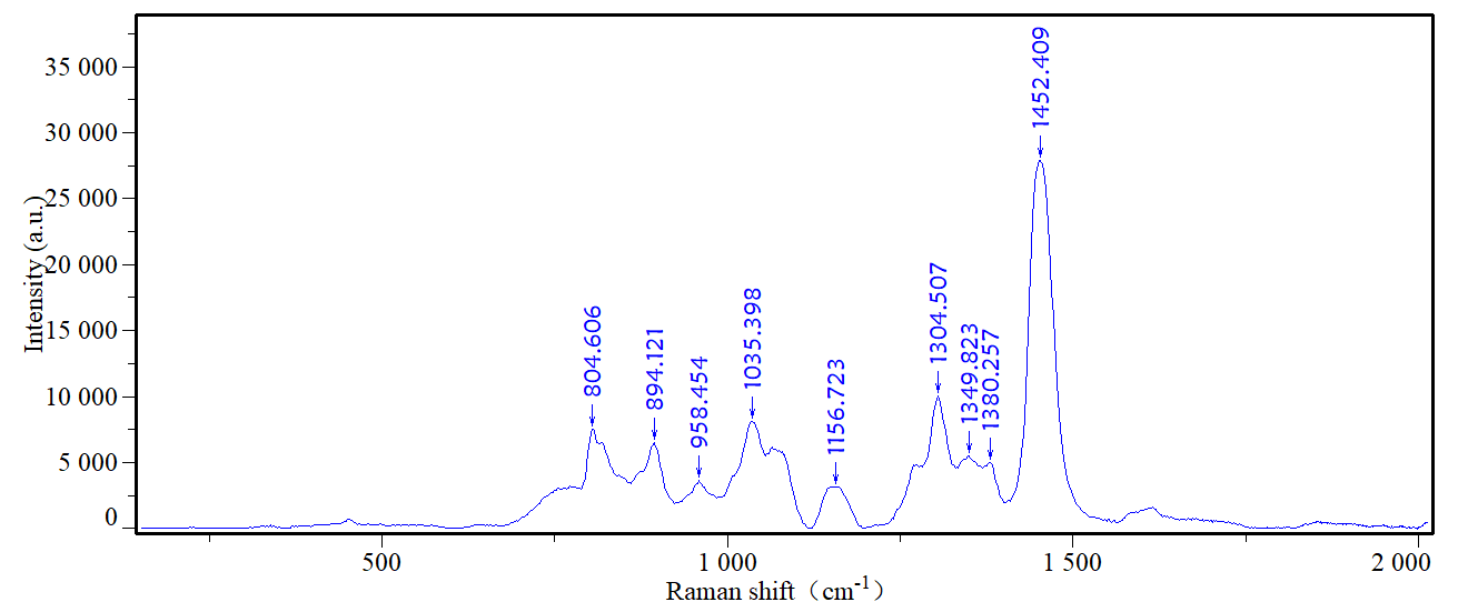 從圖中可以看出,混合物的拉曼光譜圖展現(xiàn)了潤滑油、石油醚的共同拉曼特征峰。石油醚的804cm-1、894cm-1、1037 cm-1等特征峰均檢測到,潤滑油1304cm-1拉曼特征峰峰型尖銳突出,本文的實驗證明了通過拉曼光譜可以判定潤滑油中石油醚的摻假情況。