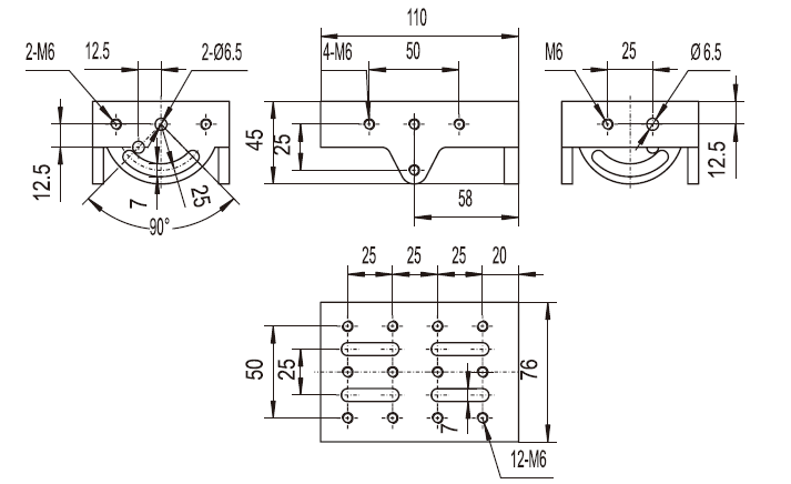 PHCR-3 universal mounting clamp come with 5 mounting surfaces. Using the arcs mounting slot can fulfill the tilt adjustments