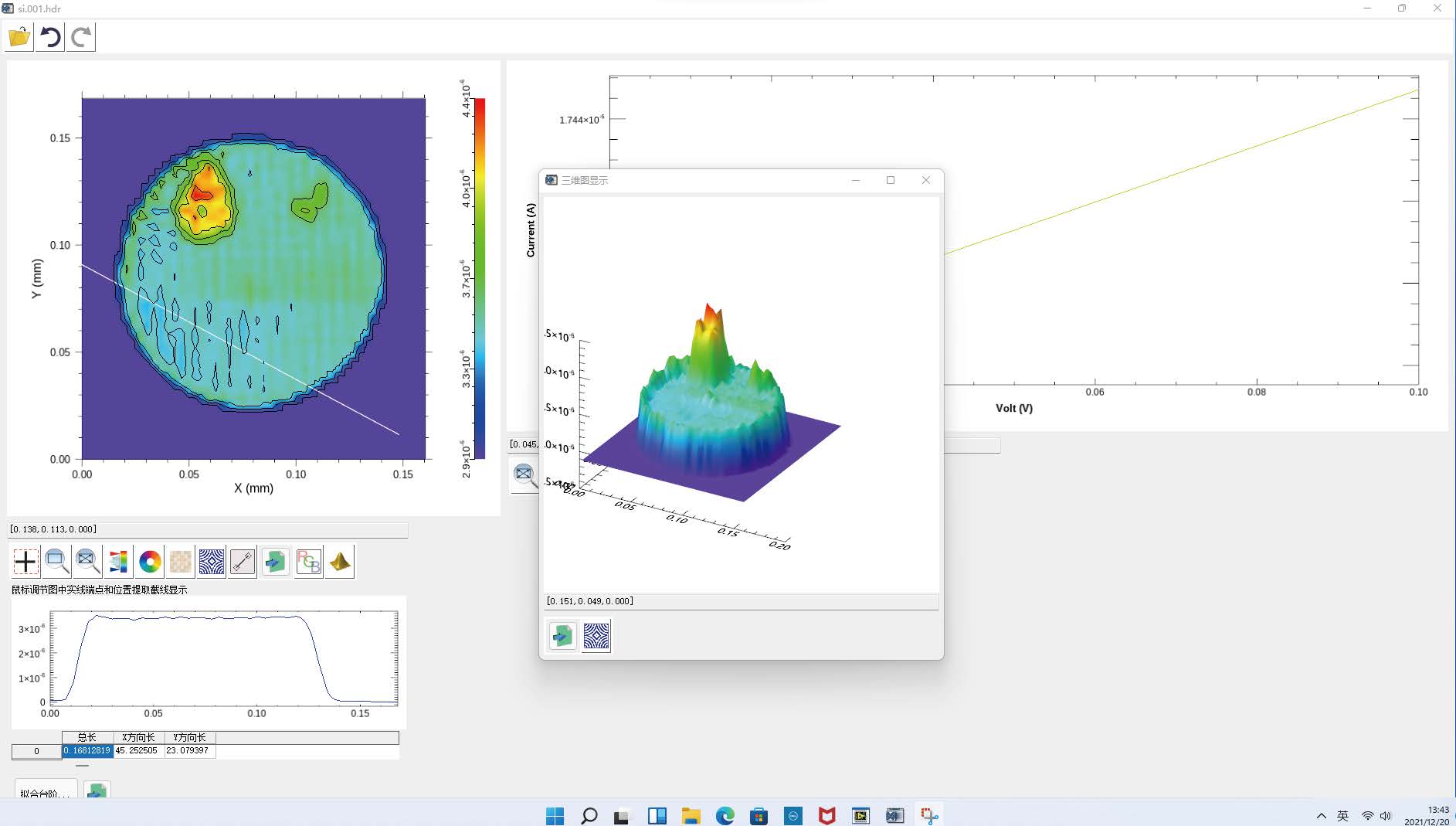 The system contains excitation lasers, scanning galvanometer, microscopy, data acquisition unit, and control software. When scanning the sample, the galvanometer make the laser spot scans and moves in the XY direction of the sample fast. The software records the position of each scanning point and current output value, and synchronously depicts a graph showing the current distribution of the sample. The light path also ensure the light spot pattern on different positions of the sample will not change.
