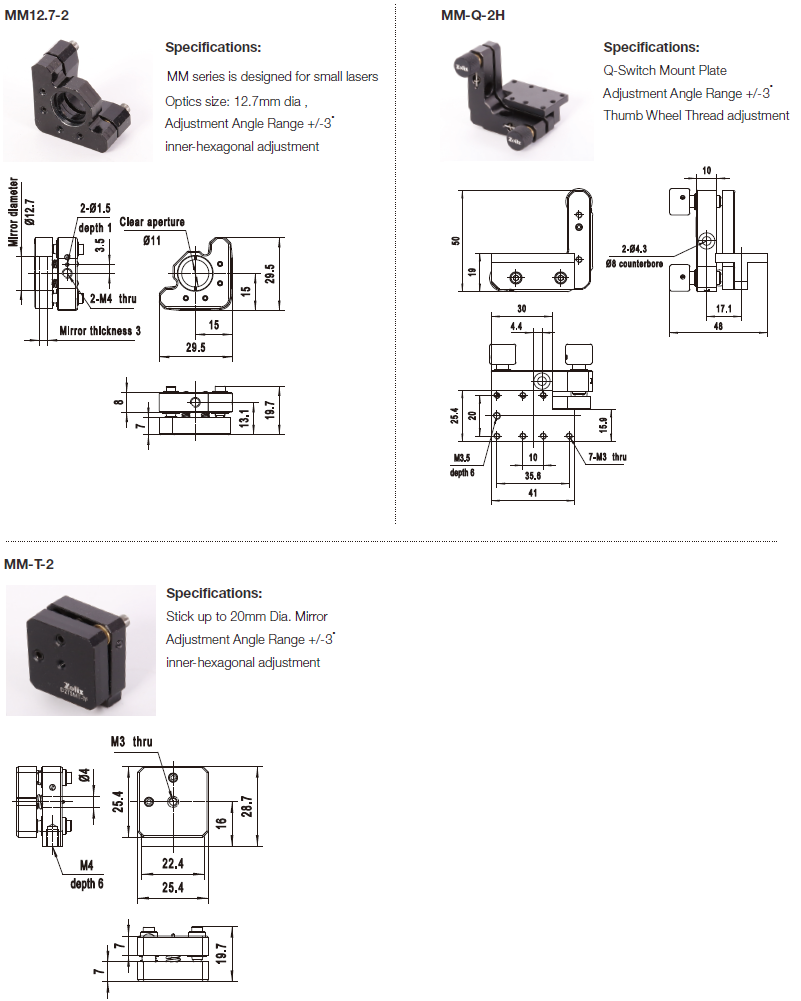 Home > Products > Mirror Mount&Accessories > Laser Mount > MM series Small Industrial Kinematic Mount