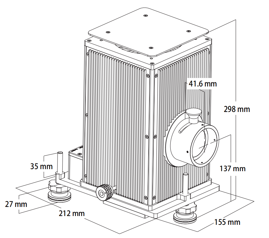 The housing has precise external lamp adjusters. They let you place the filament where it is needed. This is important for simplifying fiber and slit illumination. In many applications this eliminates the need for readjusting any optics located in the beam path outside the housing.