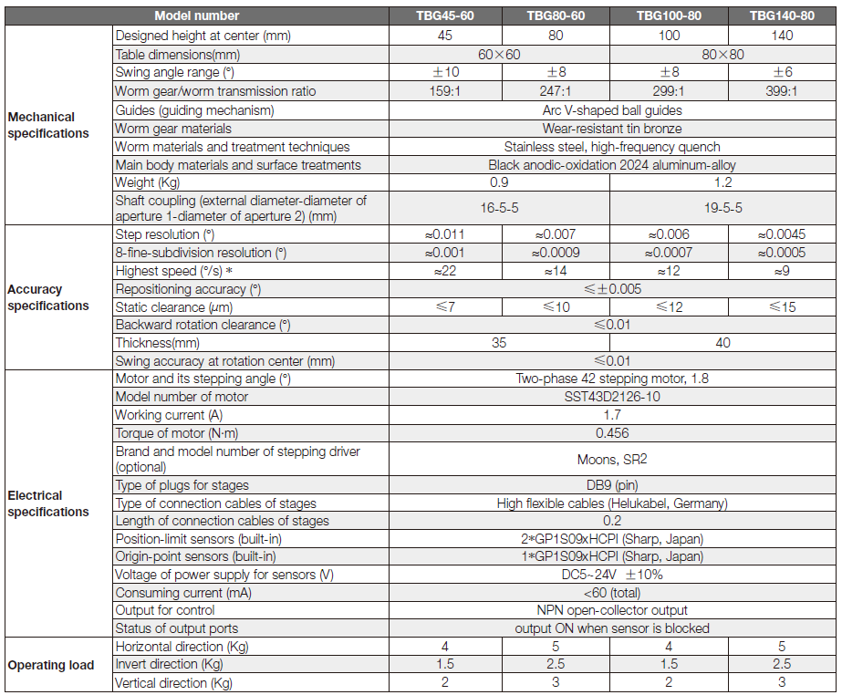 Zolix’s TBG series motorized goniometers are designed for the applications in which small size and high operation rate are needed. Hard black anodic-oxidation aluminum-alloy are employed as main body materials to present good wear-resistance and excellent appearance. It is arc V-shaped ball guides that provide higher strength, higher load capability and longer-term durability. Worm, tin-bronze-made worm gear and standard two-phase stepping motors are used in driving mechanism to offer higher resolution and positioning accuracy. This series of rotation stages are suitable for being integrated in automation equipment and instruments in which there are strict requirements of space, dimension and weight. Another suitable application scenario is industrial production lines on which limited motion space and high repetition rate are present.