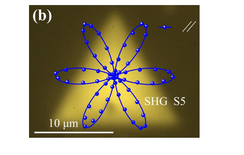 二次諧波(SHG)測量是在與TRS測量相同的裝置中獲得的,其中使用785納米激光作為基本激發(fā)光,并使用CCD光譜儀記錄二次諧波的光譜。通過步進(jìn)電機(jī)控制的偏振器和半波片來控制激發(fā)激光和生成輸出的偏振。如圖1所示為實(shí)驗(yàn)數(shù)據(jù)。