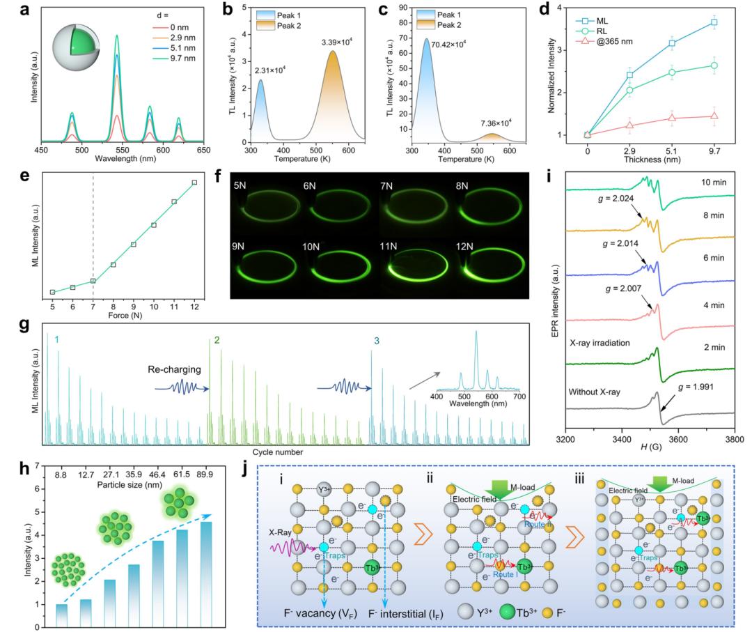 Figure 2. 核殼納米顆粒力致發(fā)光性能及機理