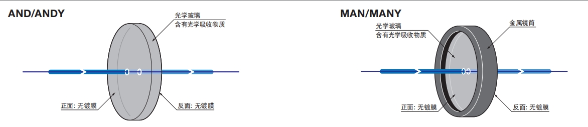 SIGMA KOKI吸收型中性密度濾光片功能說明圖: