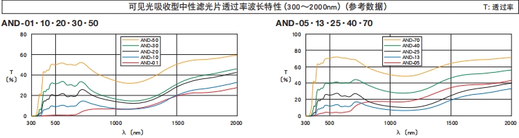 ?透過率的波長特性隨制造批號的不同而不同。尤其是適用波長之外的波長特性變化隨制造批號的不同變化較大。如果使用波長超出指定波長范圍時,請使用反射型濾光片(FND)。