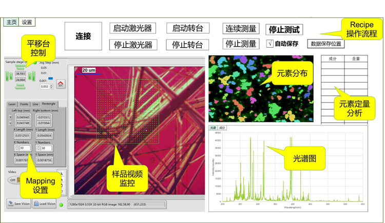 基于激光和視覺算法的自動對焦系統(tǒng),對樣品表面實(shí)時跟蹤實(shí)現(xiàn)LIBS的自動跟焦和Mapping。