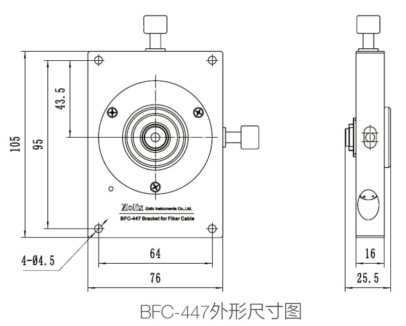 BFC-447 適用于接口為Φ10mm 圓柱型、Φ13mm 圓柱型、SMA905 接口型的光纖或光纖束;BFC-447-FC 適用于FC 接口型的光纖或光纖束??蓪饫w或光纖束進行平面XY 的二維調(diào)整,并可調(diào)整光纖至光譜儀狹縫的距離。