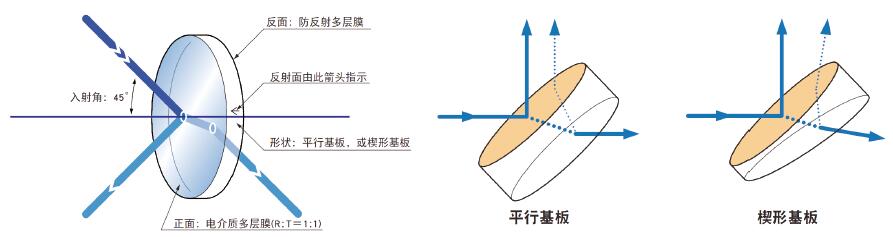 · 有不使光束產(chǎn)生變形的平行平面型,和因反面反射產(chǎn)生鬼影或干涉的影響很少的楔型兩種。