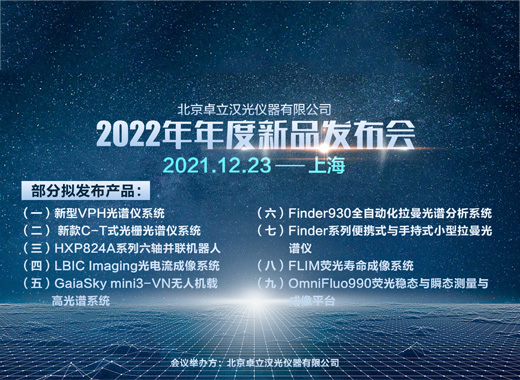 2021年12月23日北京卓立漢光儀器有限公司舉辦2022年年度新品發(fā)布會(huì),多款光電新品重磅亮相,期待與您相聚。