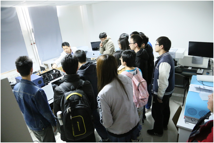 張恒總經(jīng)理為學(xué)生介紹熒光和拉曼光譜實(shí)驗(yàn)室并為學(xué)生們展示了我司