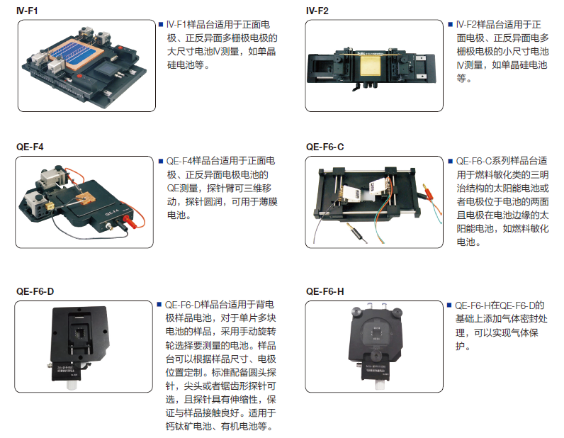 針對太陽能電池的量子效率測試、伏安特性測試,卓立漢光為了方便廣大客戶使用,設(shè)計了多種探針樣品臺,以供用戶選擇。