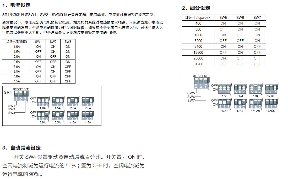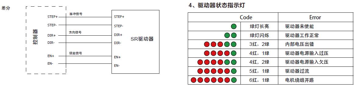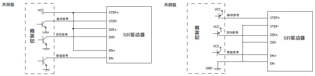 SR4驅(qū)動器有2個高速輸入口STEP和DIR,光電隔離,可以接受5-24VDC單端或差分信號,*高電壓可達28V,信號下降沿有效。信號輸入口有高速數(shù)字濾波器,濾波頻率為2MHz。