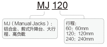 MJ系列剪式手動(dòng)升降滑臺(tái)選型表: