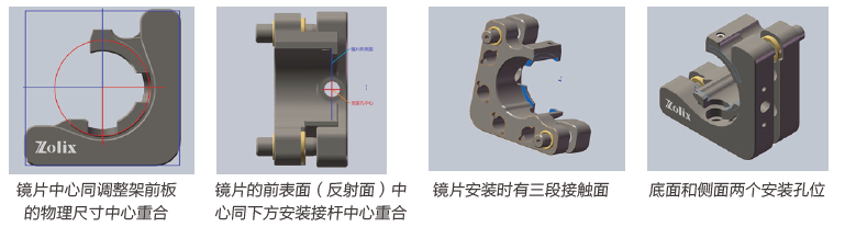 ①鏡片中心與前板中心重合,便于找正光軸(根據(jù)調(diào)整架的前板很容易就找正光軸的中心位置和中心高),即使是非可見光,也很容易調(diào)整光路