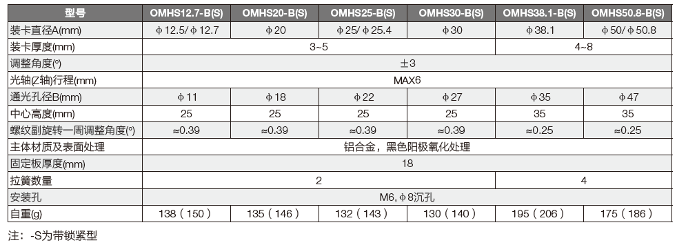 OMHS系列三維高穩(wěn)定光學調整架選型表: