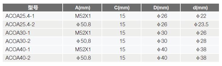 ACOA 系列接圈按適配外徑分為兩種型式:1型外徑為M52X1螺紋,2型外徑為50.8。它們可與其它系列具有相應(yīng)內(nèi)徑的產(chǎn)品配套使用,改變可固定的鏡片大小,通用性強,提高工作效率。一物多用,節(jié)省資金,節(jié)約時間。