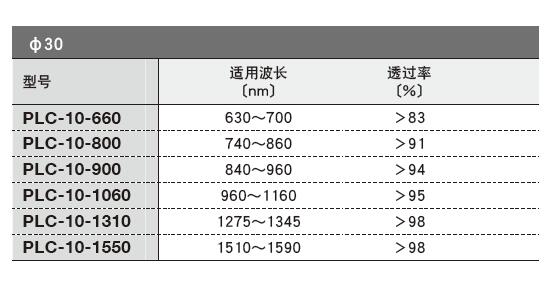 OPSP系列偏振片選型表: